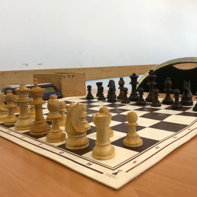 Après un début d'apparence assez modeste (1.e4 d5 2.exd5 Cf6 3.Cc3 Cxd5 4.Fc4 Cb6 5.Fb3 Cc6 6.d3 e5), Eric lance une attaque prometteuse sur le petit roque adverse à base du classique Dh5 suivi de Cg5. S'ensuit une finale T+F de couleurs opposées avec un pion de plus, où l'avantage matériel parle malgré les défauts de structure : 1-0. Pendant ce temps Emmanuel gère un milieu de jeu peu commun suite à un début hybride : 1.e4 c5 2.Cf3 d6 3.d4 cxd4 4.Fb5+!? les blancs changent d'avis et veulent finalement une Rossolimo ? ici la base lichess 2200+ préconise 4...Fd7, alors que Cd7 est tout à fait jouable sans d4 cxd4. Subtil. 4...Cd7?! joué, et les noirs sont restés longtemps avec un pion de plus. Un dangeureux pion b passé blanc aurait pu retourner la situation, mais il est finalement neutralisé : s'ensuit un gain facile.